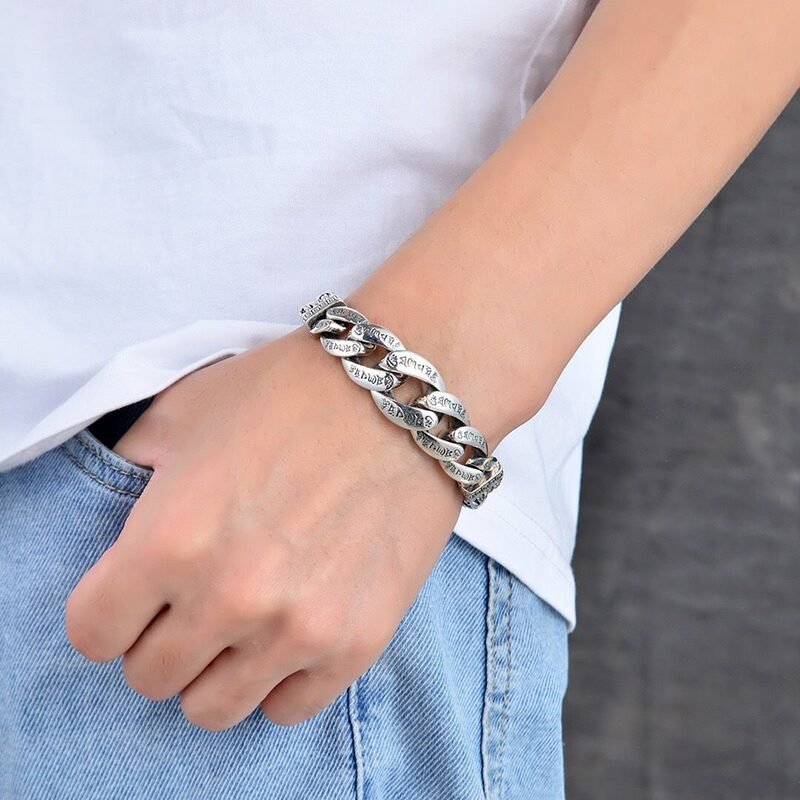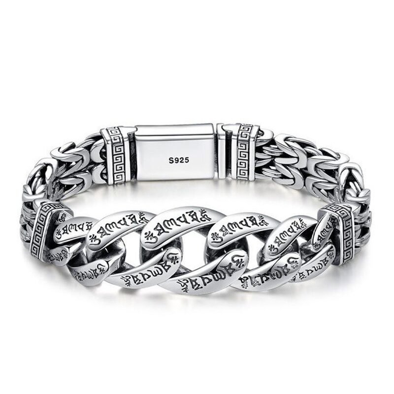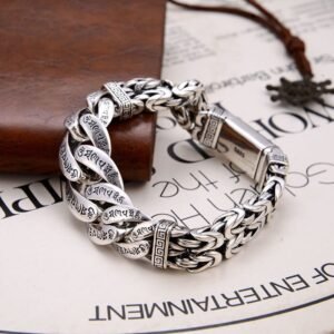Cada elo carrega inscrições do mantra sagrado, transformando a peça em um amuleto de proteção, paz e energia positiva.