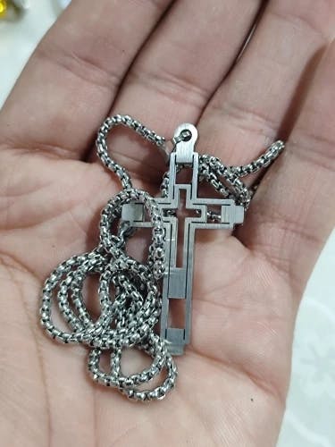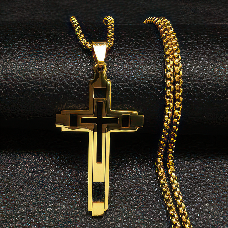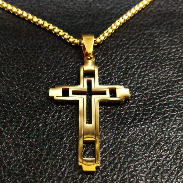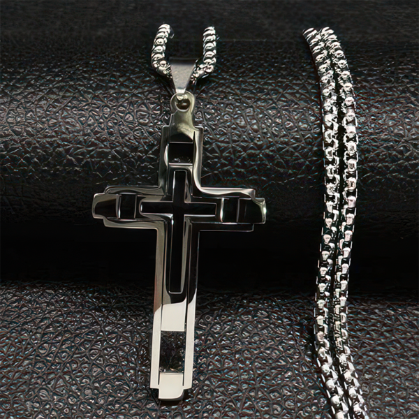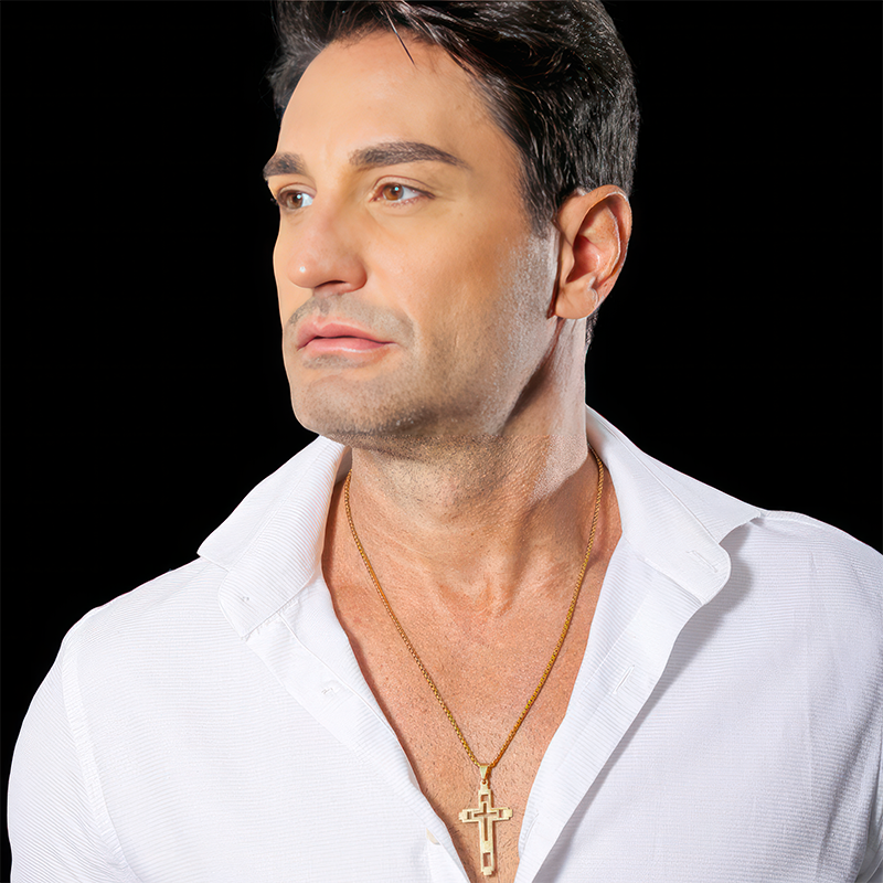 Seu design moderno e robusto, com um crucifixo de linhas marcantes, foi criado para o homem que carrega suas convicções com orgulho e confiança.
