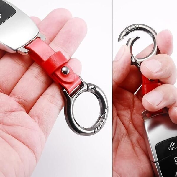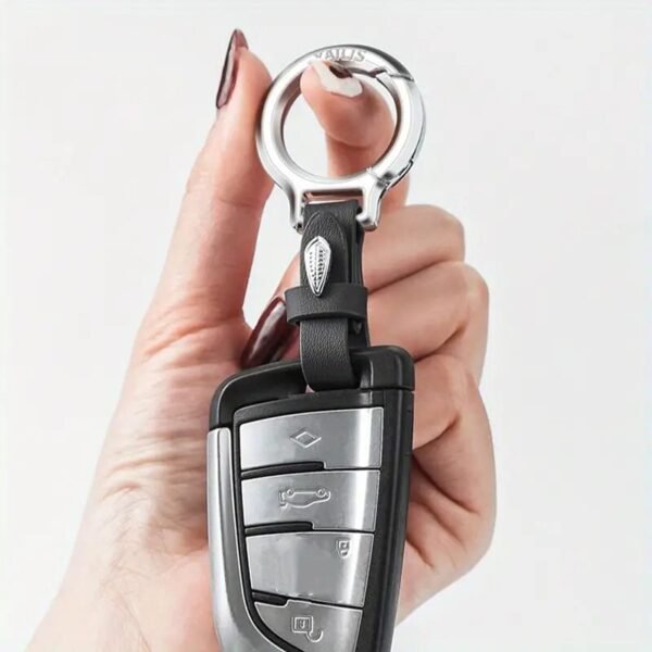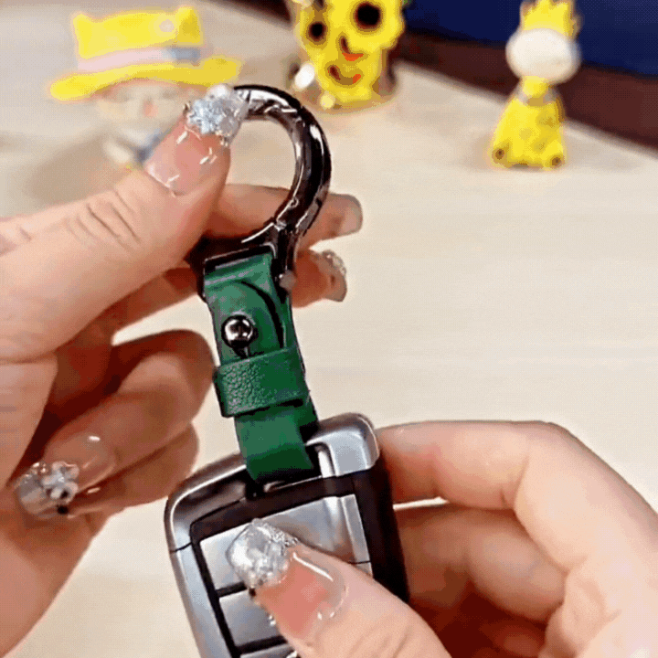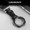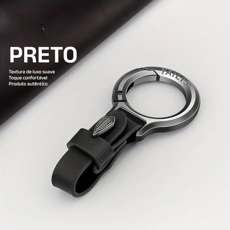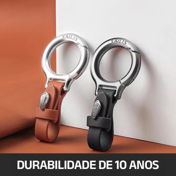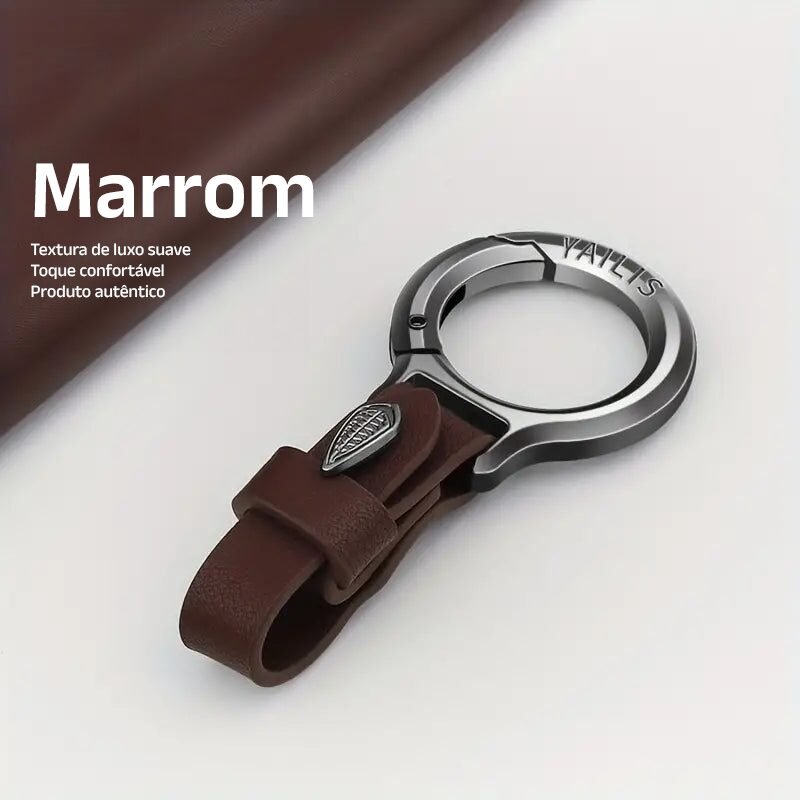 Uso simples: Dispensa ferramentas. O fecho exclusivo permite prender ou soltar as chaves pela alça de couro em segundos, agilizando sua rotina.