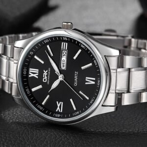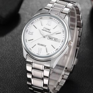 Equipado com um movimento Quartz de alta precisão, este relógio garante que você esteja sempre no controle do seu tempo.