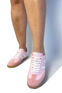 Projetado para oferecer conforto e estilo, ele é confeccionado em Napa Soft (sintético) em um delicado tom de rosa, com recortes na biqueira em camurça, adicionando um toque de textura e um acabamento refinado.
